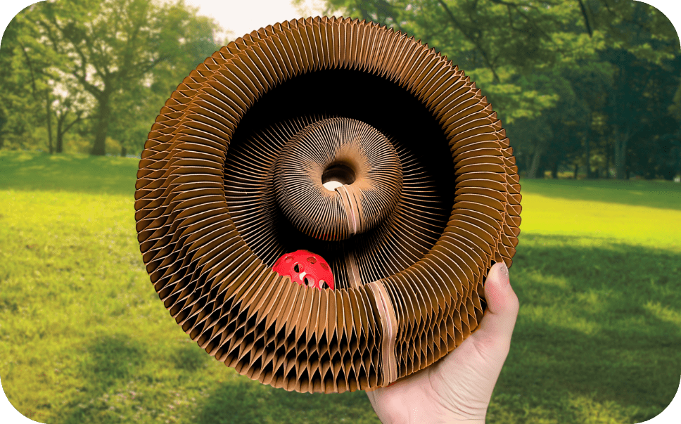 Your cat will twist, flip, spin, scratch and pounce at it for hours.A circular never ending ball track that never falls out.Safe on paws and made with double corrugated cardboard.